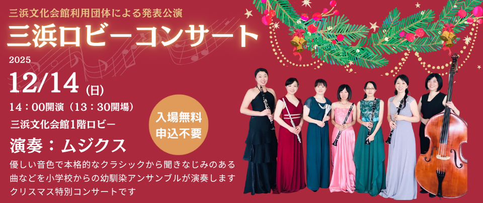 三浜文化会館ロビーコンサート 12月14日(日)14:00~ 出演:ムジクス