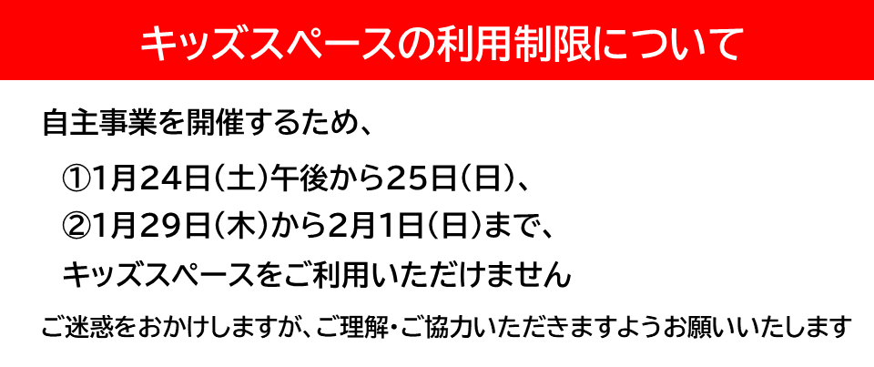 キッズスペース利用制限のお知らせ2