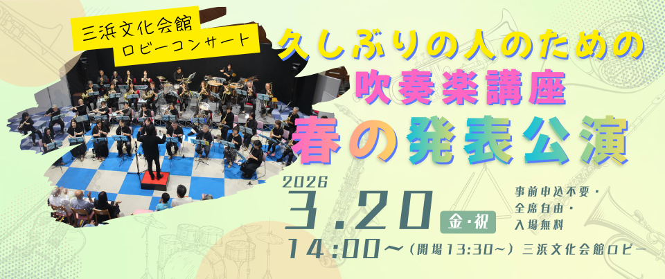 三浜文化会館コンサート「久しぶりの人のための吹奏楽講座 春の発表公演」3月20日(金・祝)14:00~ 開催