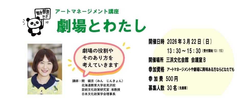 舞台創造ゼミ アートマネージメント講座「劇場とわたし」参加者募集