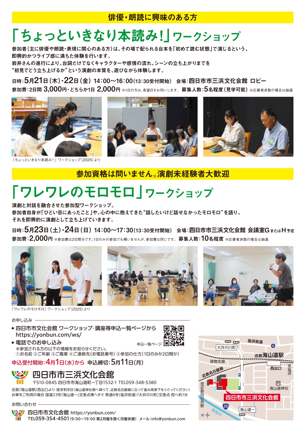 お問い合わせ:四日市市文化会館 Tel:059-354-4501 (火曜休館 9:00~19:00)
